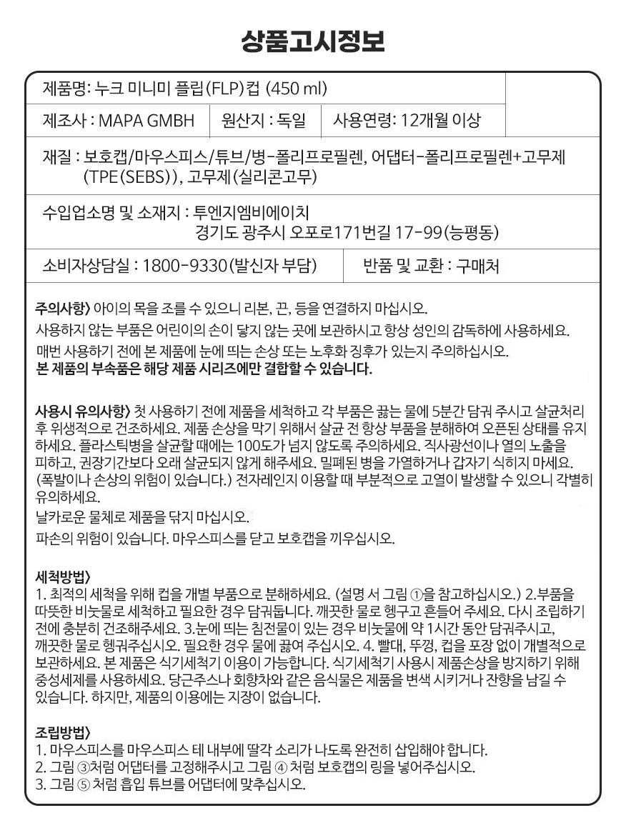 | 품명 및 모델명 | 누크 미니미 Flip 2in1 빨대 & 드링킹컵 450ml | 재질 | 컨텐츠 참조 |