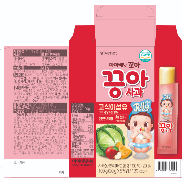 | 제품명 | 아이배냇 꼬마 끙아 사과 | 식품의 유형 | 컨텐츠 참조 |