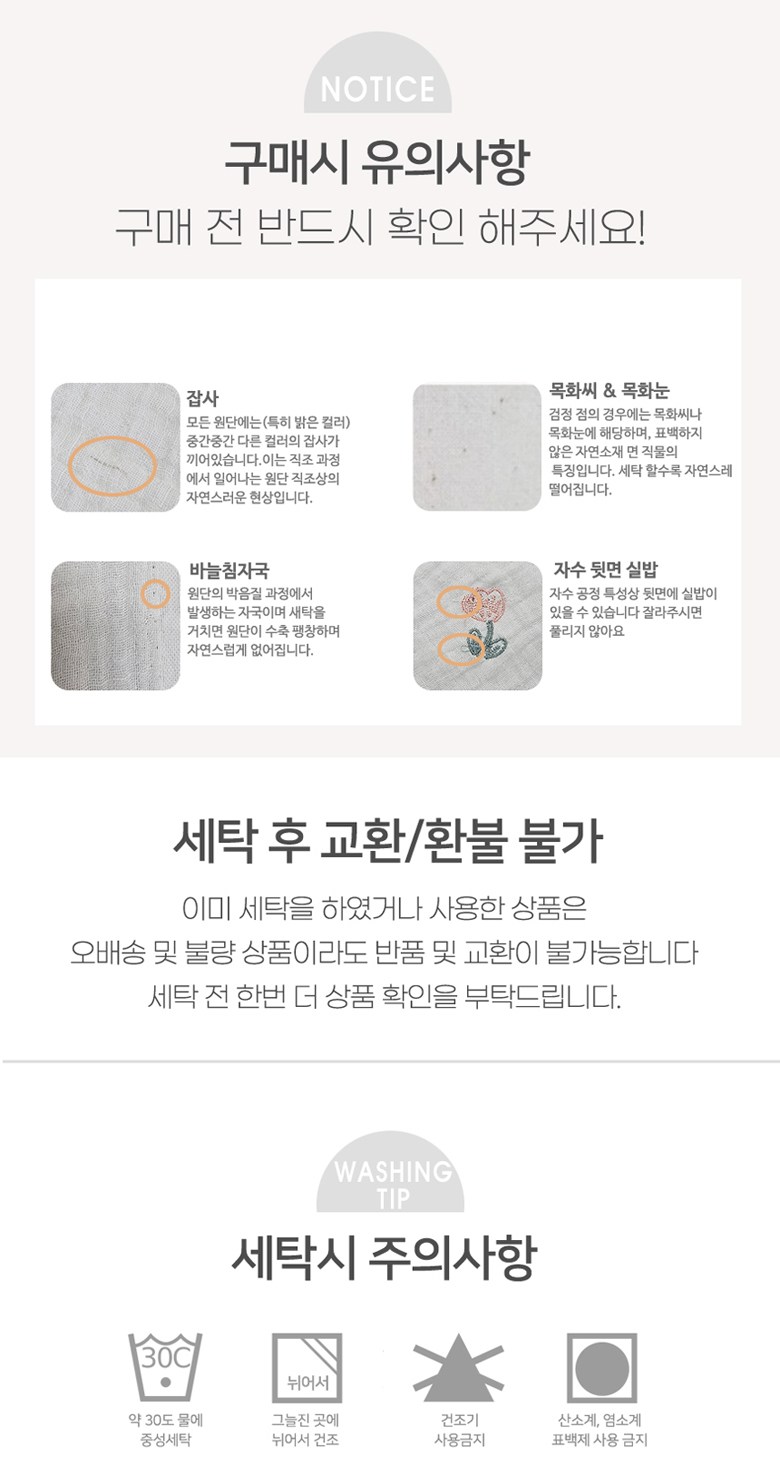 - ㆍ모니터 해상도의 차이로 인해 색상이나 이미지가 실제와 달라, 고객이 단순 변심으로 교환/반품을 무료로 요청하는 경우