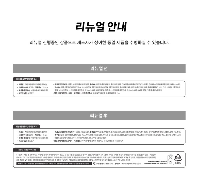 - ㆍ교환/반품에 관한 일반적인 사항은 판매자가 제시사항보다 관계법령이 우선합니다.