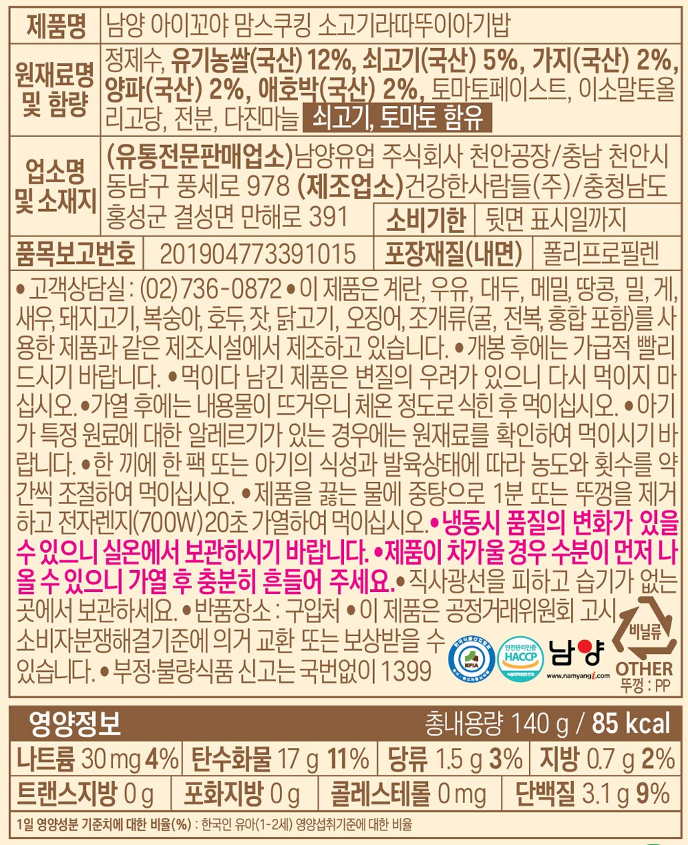 | 제품명 | 컨텐츠 참조 | 식품의 유형 | 영유아용 이유식 |