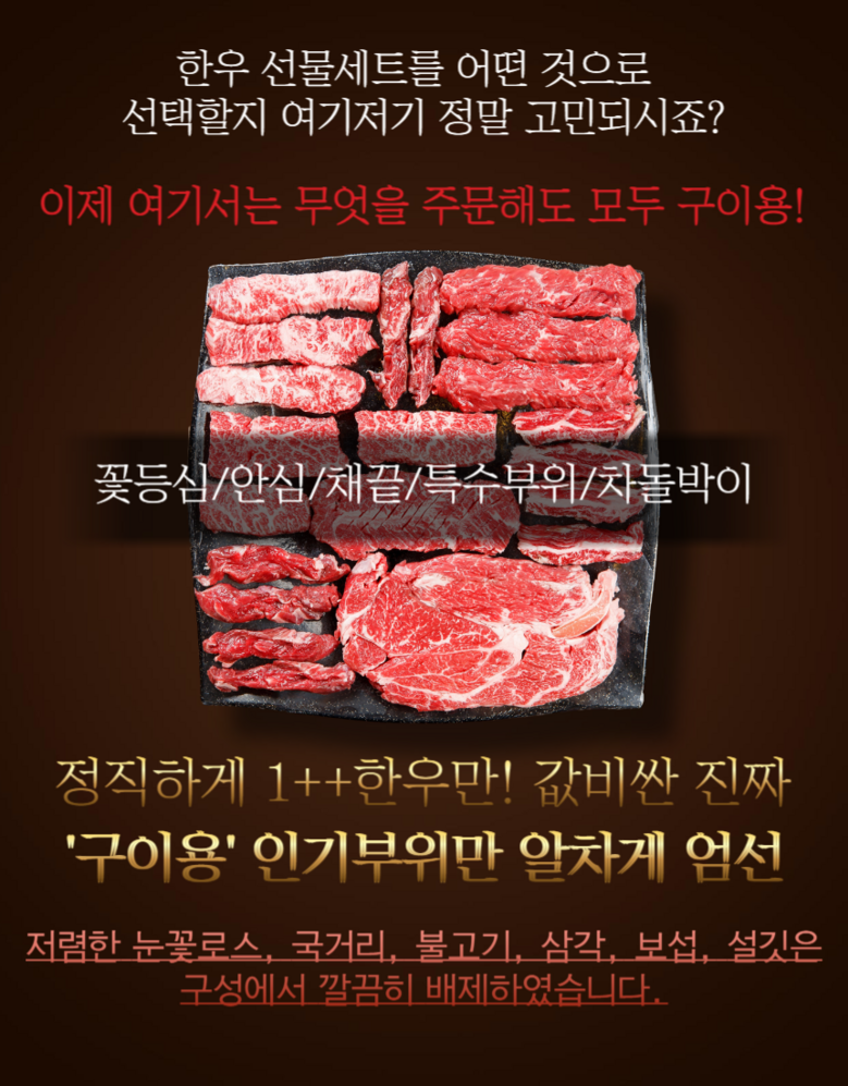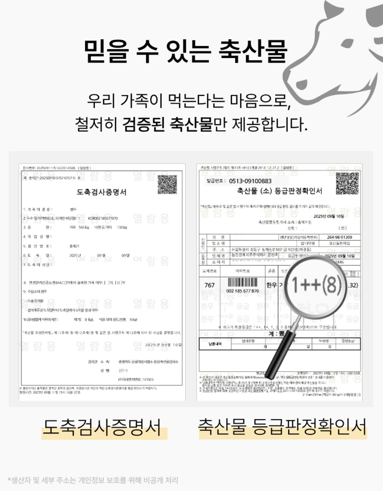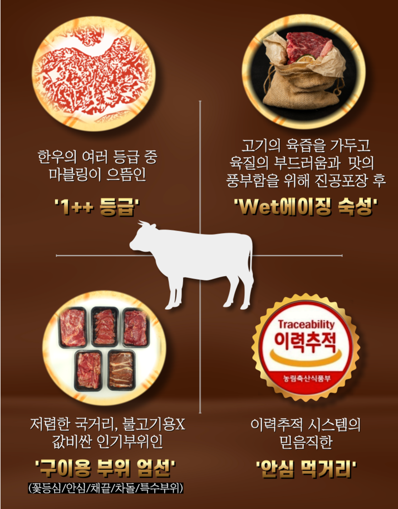 | 생산자(수입자) | 상품 상세페이지 참조 | 원산지 | 구이용 1++ 한우 (국내산) |