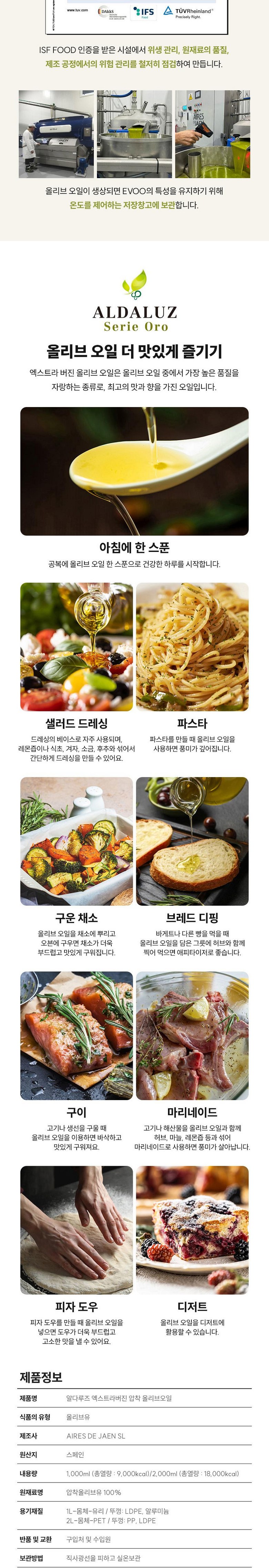 | 제품명 | 알다루즈 엑스트라버진 압착 올리브오일 | 식품의 유형 | 올리브유 |