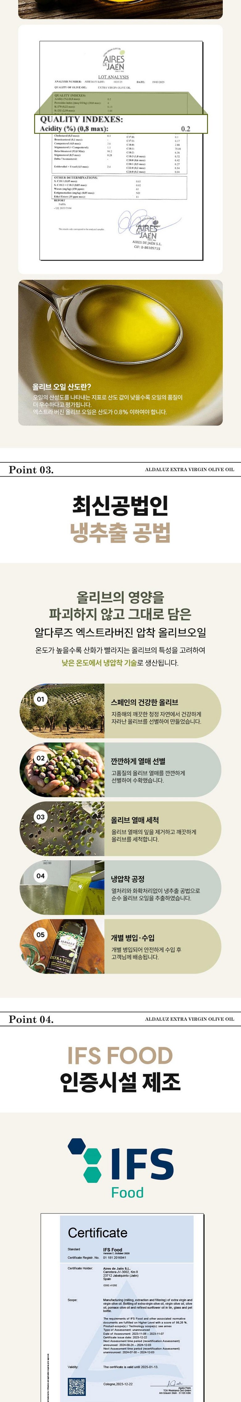 | 생산자 및 소재지 | AIRES DE JAEN SL / 스페인 | 제조연월일, 소비기한 또는 품질유지기한 | 소비기한(또는 유통기한) : 2027년 11월 01일 이거나 그 이후인 상품 제조년월일 : 2025년 11월 02일 이후인 제조상품 |