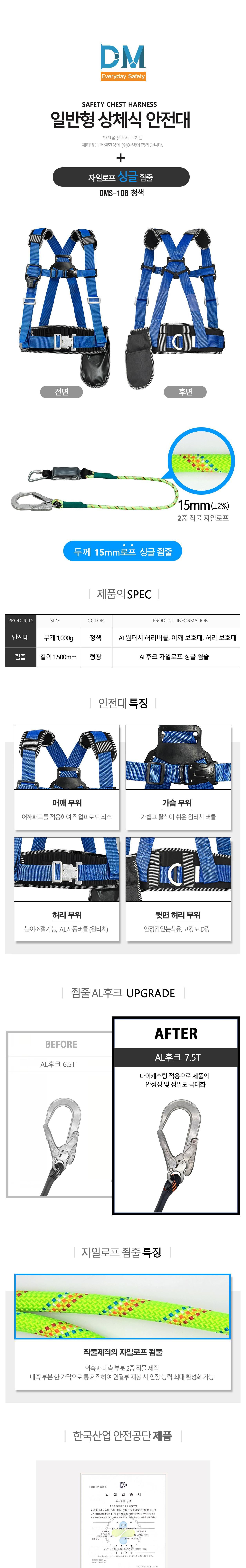 | 품명 및 모델명 | 동명 상체식안전벨트 / MS-106 | 인증/허가 사항 | 10-AV2CY-0204 |