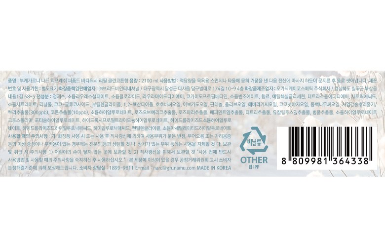| 화장품제조업자, 화장품책임판매업자 및 맞춤형화장품판매업자 | 컨텐츠 참조 | 제조국 | 대한민국 |