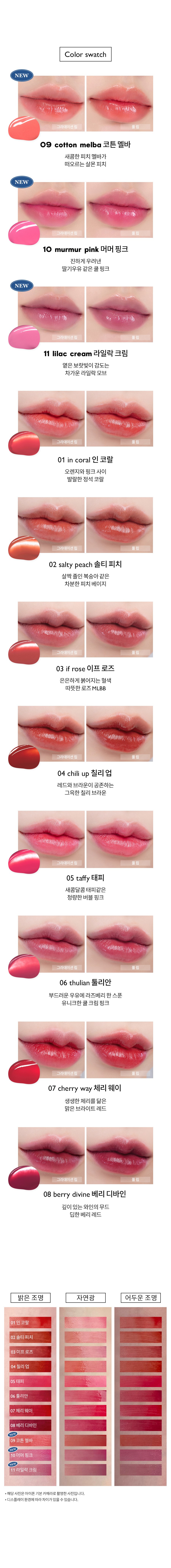 - 립메이크업 제형: 리퀴드/잉크