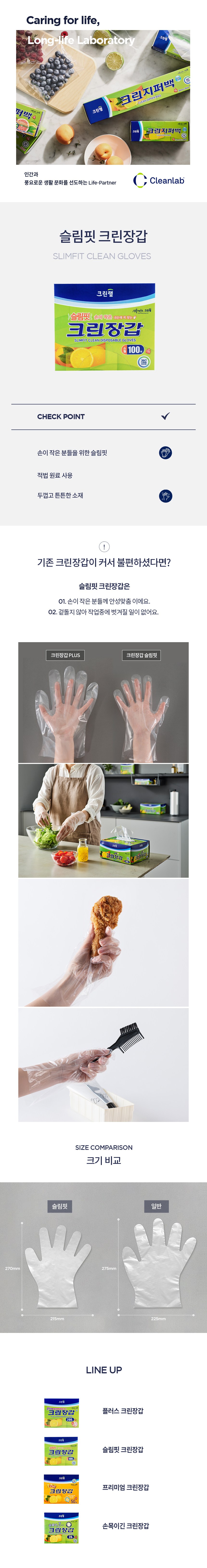 | 품명 및 모델명 | 크린랩 슬림핏 크린장갑 | 재질 | 저밀도 폴리에틸렌(LDPE) |