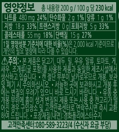 | 포장단위별 내용물의 용량(중량), 수량 | 200g x 9개 | 원재료명 및 함량 | 컨텐츠 참조 |