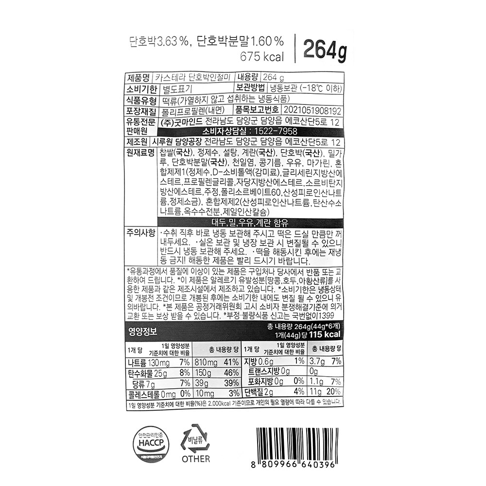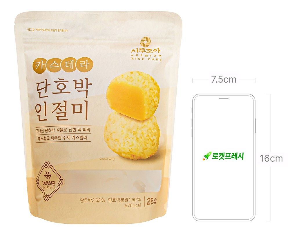 시루조아의 카스테라 단호박 인절미를 소개할게요. 엄선한 찹쌀과 단호박 원물로 만든 인절미예요. 덕분에 쫄깃한 식감과 함께 은은한 달콤함을 선사하죠. 쫀득한 반죽 위에 촉촉한 카스테라 고물을 묻혀 고소함을 더했답니다. 취향에 맞는 음료나 커피를 곁들여 즐겨 보세요. 두 개씩 소분 포장한 뒤 지퍼백 형태의 패키지에 담았습니다. 그때그때 원하는 만큼 꺼내 드실 수 있어요.