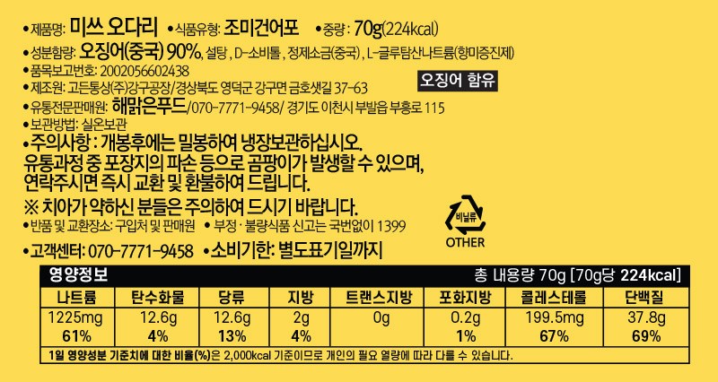 | 포장단위별 내용물의 용량(중량), 수량 | 70g*3개 | 원재료명 및 함량 | 컨텐츠 참조 |