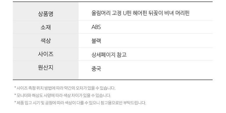 | 종류 | 헤어핀 / U핀 비녀 | 소재 | 스테인리스강, ABS |