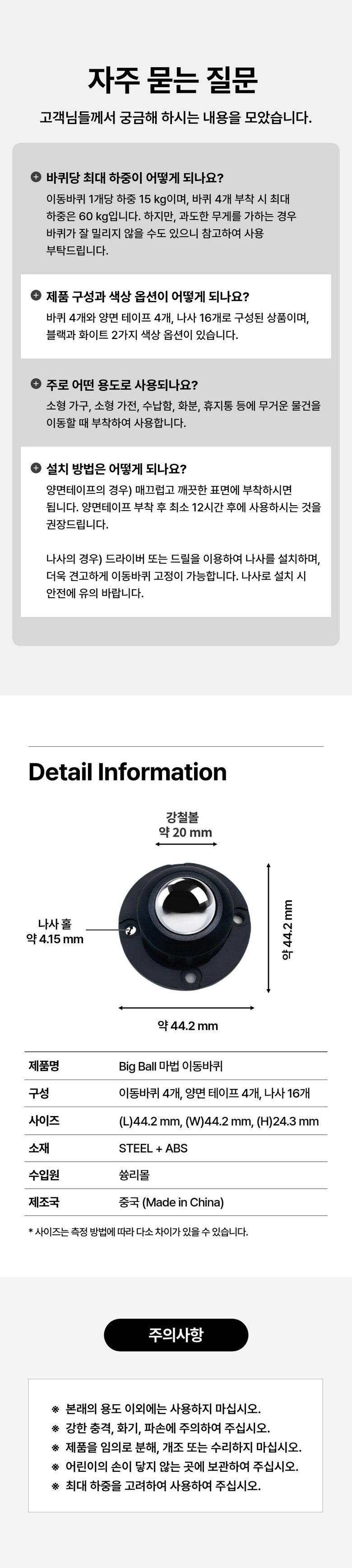 | 제조국(원산지) | 중국 | 제조자(수입자) | 쓩리몰 |