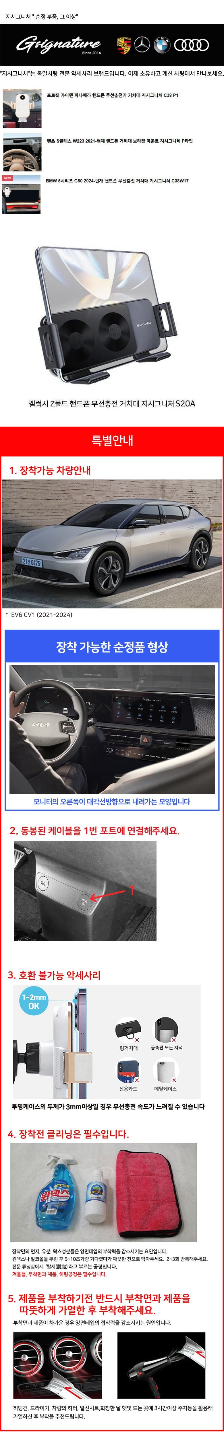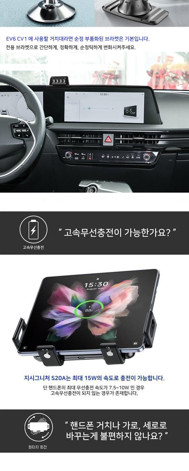 지시그니처 EV6 CV1 2021~24 갤럭시 Z폴드 핸드폰 무선충전 거치대 S20A-A1