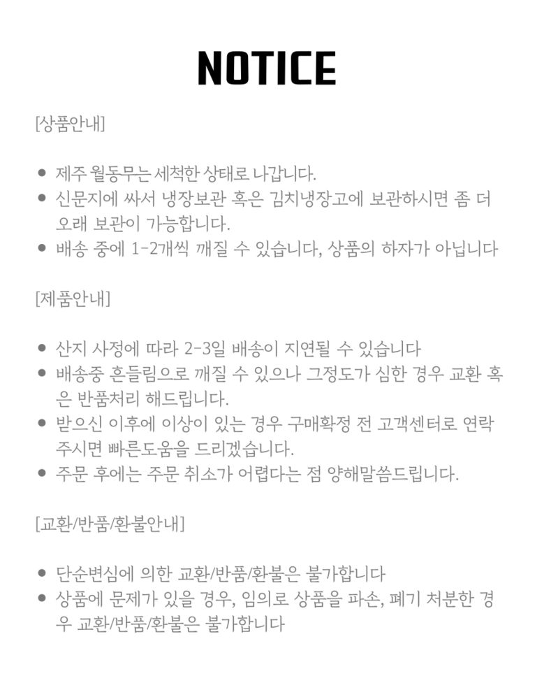 - 상품문의 및 후기게시판을 통해 취소나 환불, 반품 등은 처리되지 않습니다.