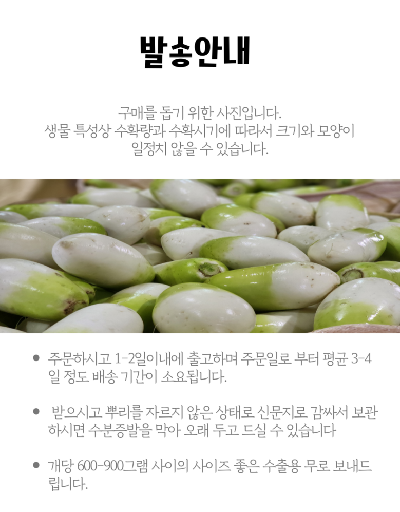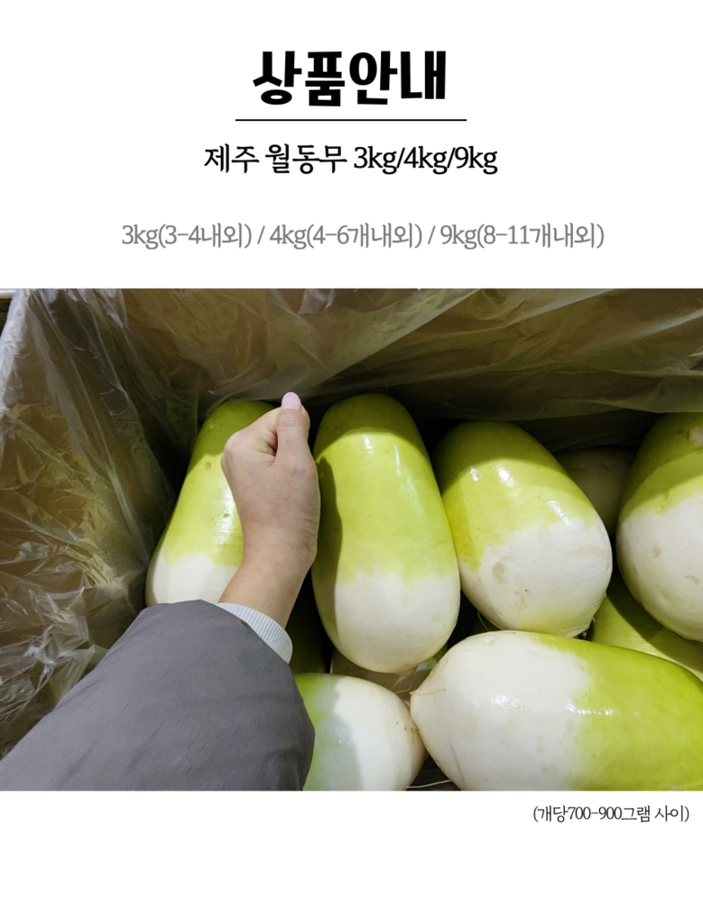 중량 × 수량: 4kg(5개내외/동치미용) × 1박스