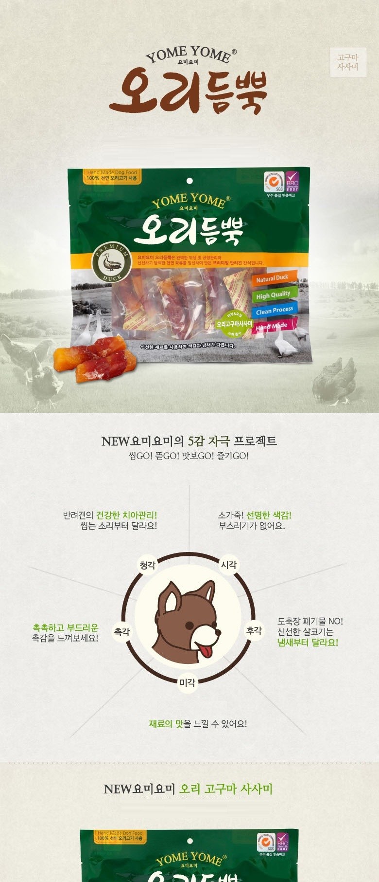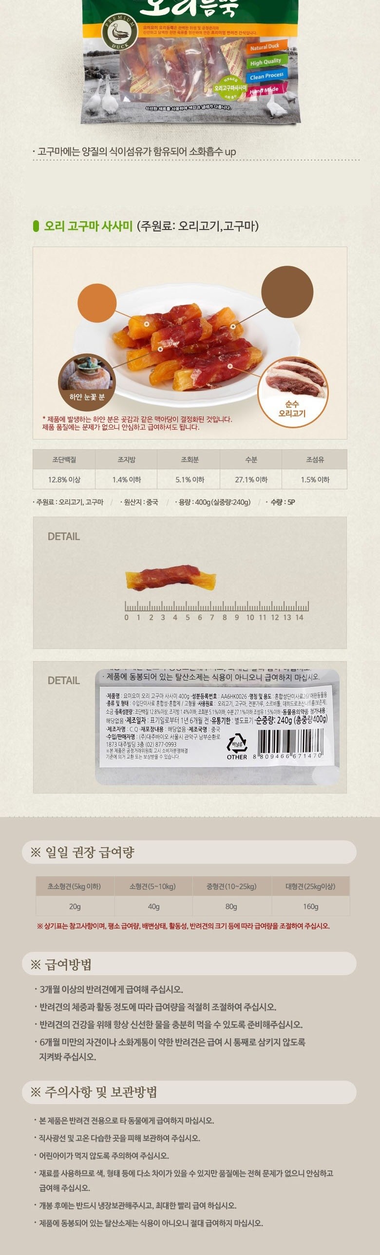 | 품명 및 모델명 | 요미요미 오리 고구마 사사미 400g | 인증/허가 사항 | 사료관리법에 따른 성분등록번호 : 컨텐츠 참조 |