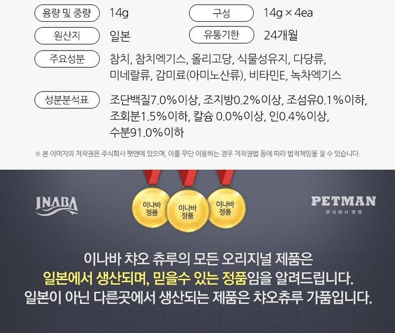 | 품명 및 모델명 | 이나바 챠오츄르 | 인증사항 | 상세내용참조 |