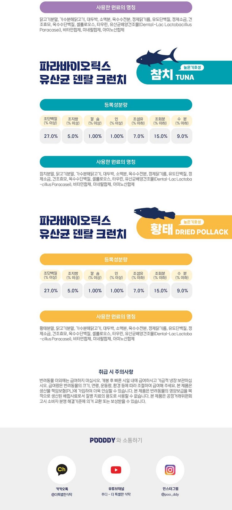 | 품명 및 모델명 | 더특별한식탁 유산균 덴탈 크런치 | 인증/허가 사항 | 상품 상세페이지 참조 |