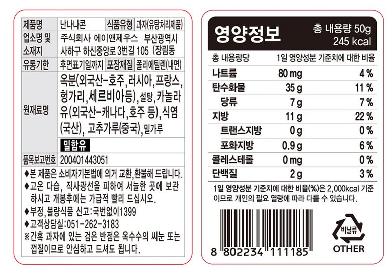 | 제품명 | 상품 상세페이지 참조 | 식품의 유형 | 상품 상세페이지 참조 |