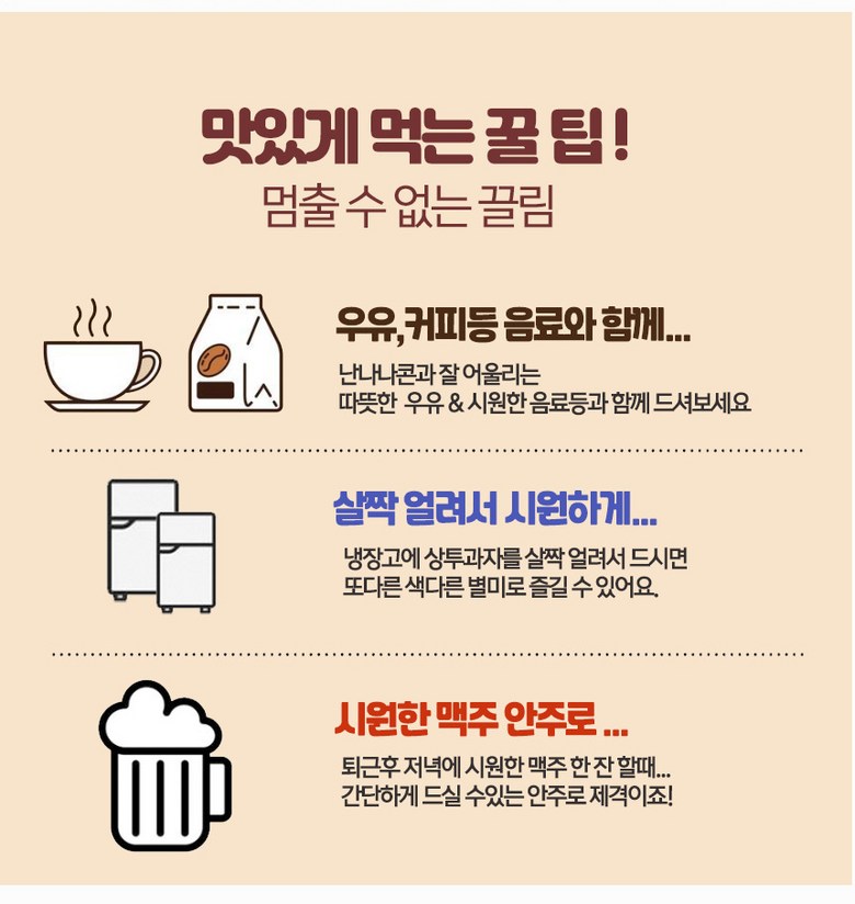 | 생산자 및 소재지 | 상품 상세페이지 참조 | 제조연월일, 소비기한 또는 품질유지기한 | 상품 상세페이지 참조 |