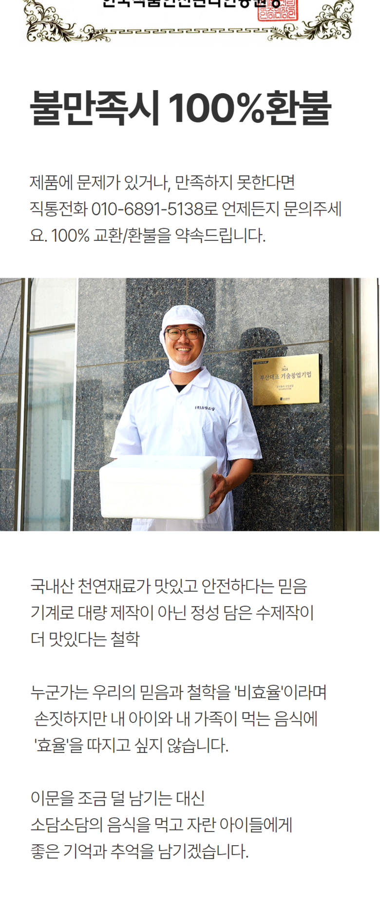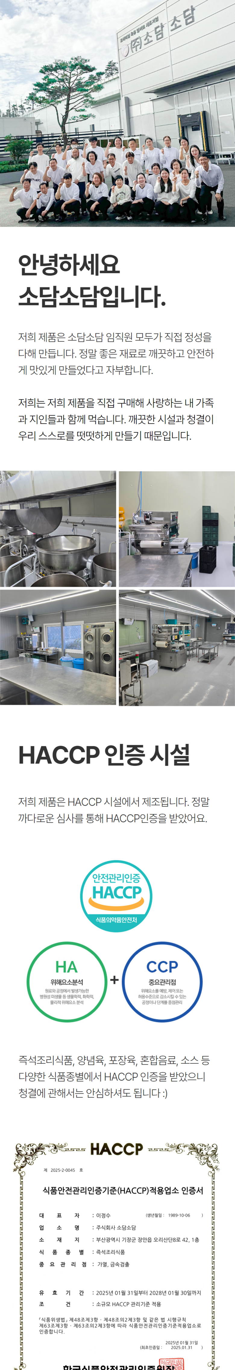| 생산자 및 소재지 | (주)소담소담 / 부산시 기장군 장안읍 오리산단 8로 42 | 제조연월일, 소비기한 또는 품질유지기한 | 제품 별도 표기 |