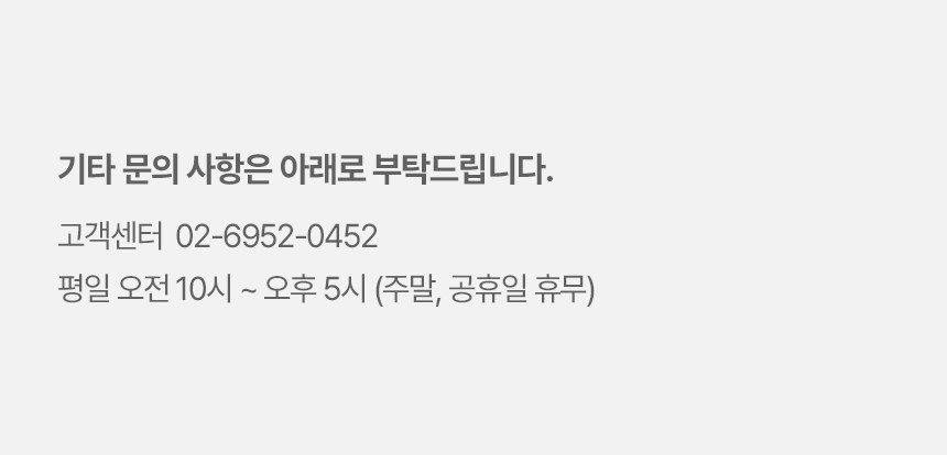 - 가격, 판매자, 교환/환불 및 배송 등 해당 상품 자체와 관련 없는 문의는 고객센터 내 1:1 문의하기를 이용해주세요.