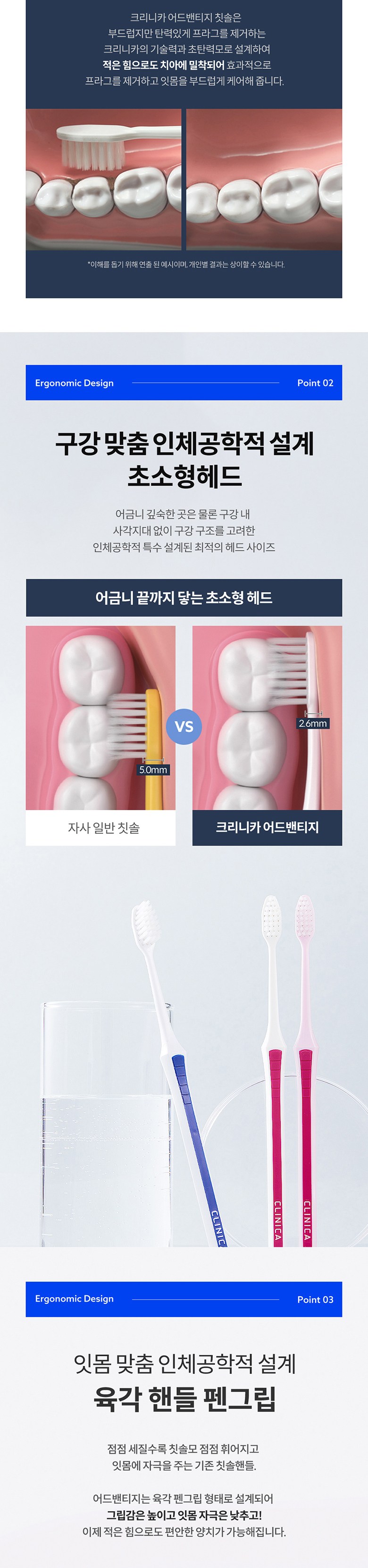 | 품명 및 모델명 | 크리니카 어드밴티지 탄력모 초콤팩트헤드 칫솔 | 인증/허가 사항 | 해당없음 |