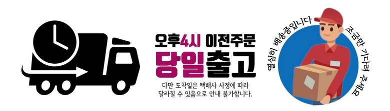 | 배송기간 | ㆍ도서산간 지역 등은 배송에 3-5일이 더 소요될 수 있습니다. - 천재지변, 물량 수급 변동 등 예외적인 사유 발생 시, 다소 지연될 수 있는 점 양해 부탁드립니다. | ||