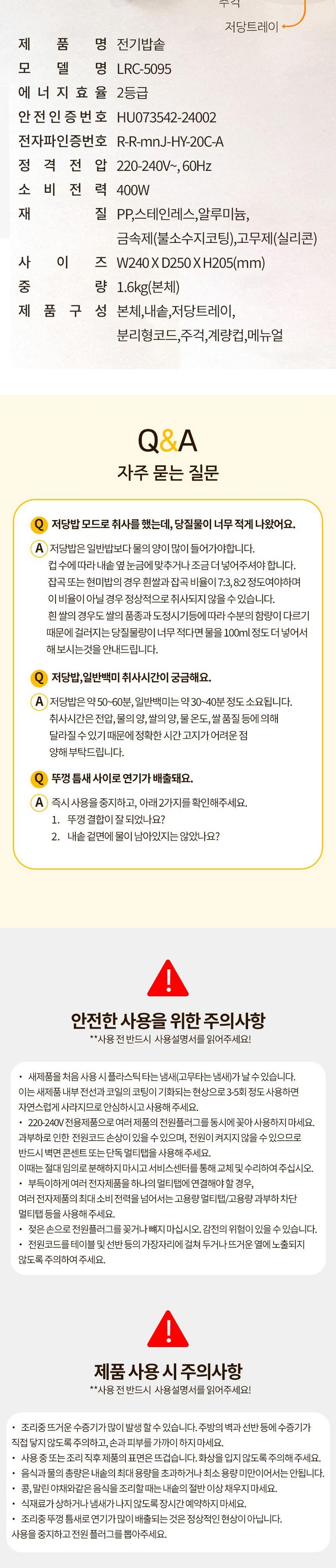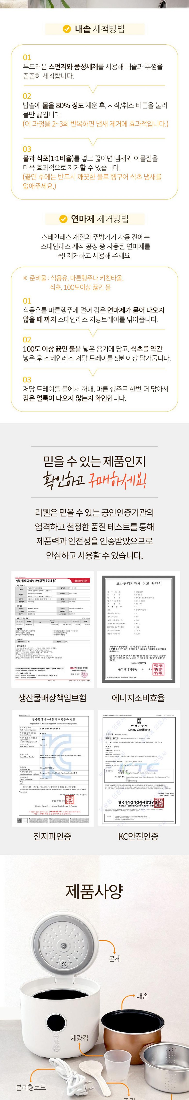 - 내솥뚜껑 분리 가능여부: 분리 가능