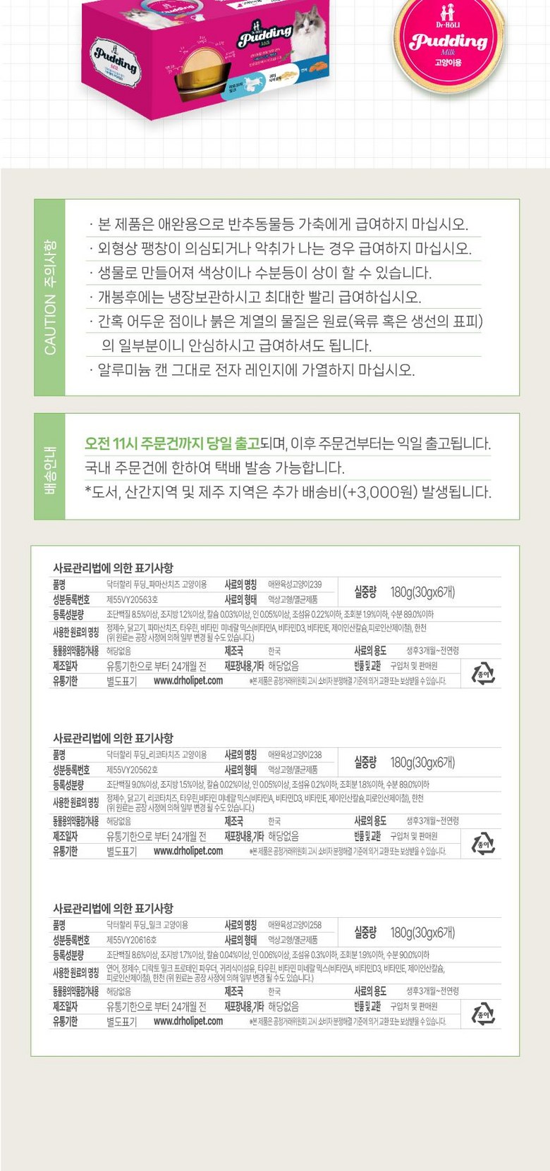 [1박스+1박스/무료배송] 닥터할리 고양이 푸딩 3종 유통기한 2026.05.06