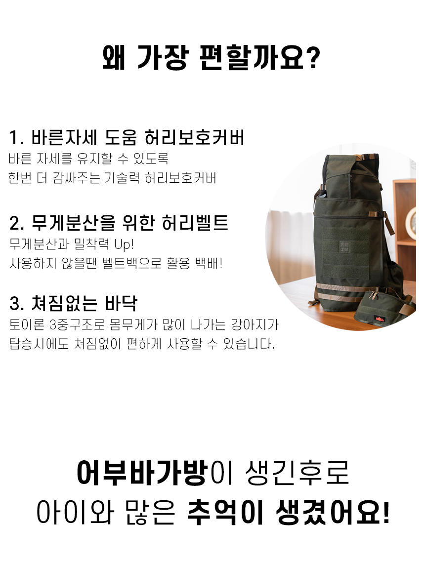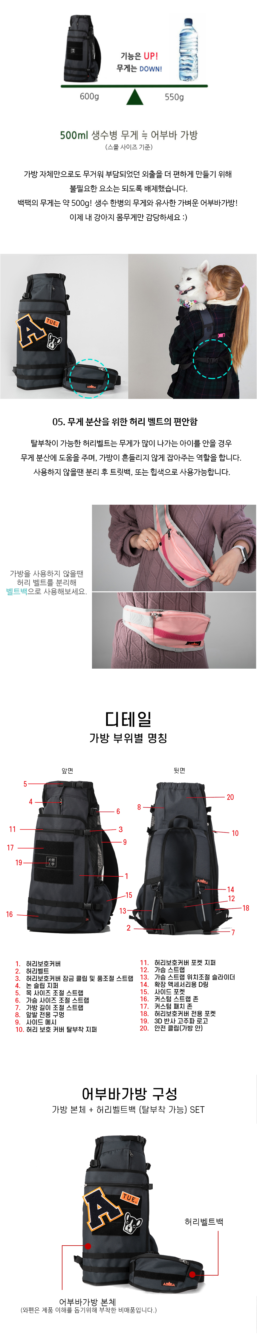 | 품명 및 모델명 | 어부바 반려동물 견체공학 이동가방 | 인증/허가 사항 | 해당없음 |