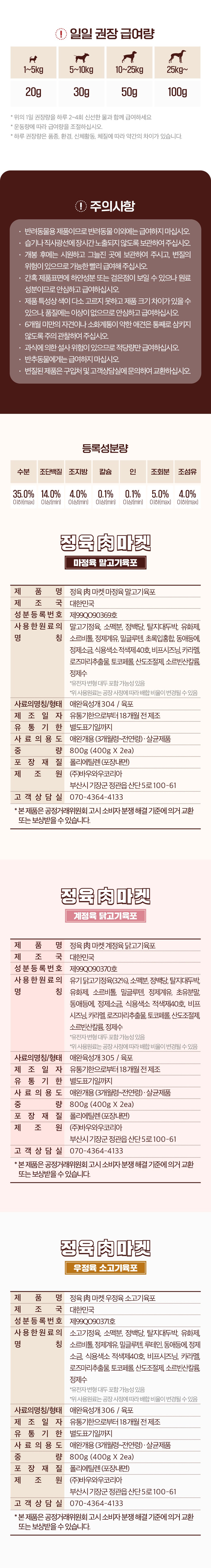 | 품명 및 모델명 | 정육肉마켓 마정육 말고기육포 | 인증/허가 사항 | 사료관리법에 따른 성분등록번호 : 컨텐츠 참조 |