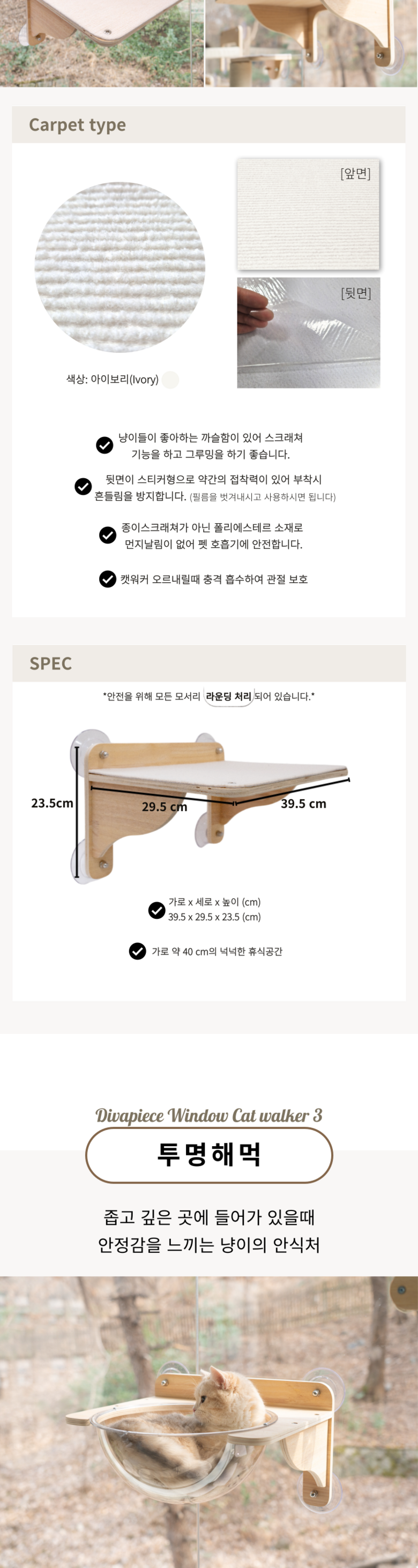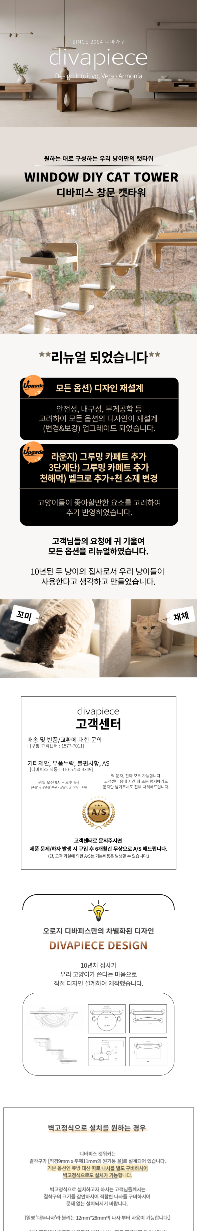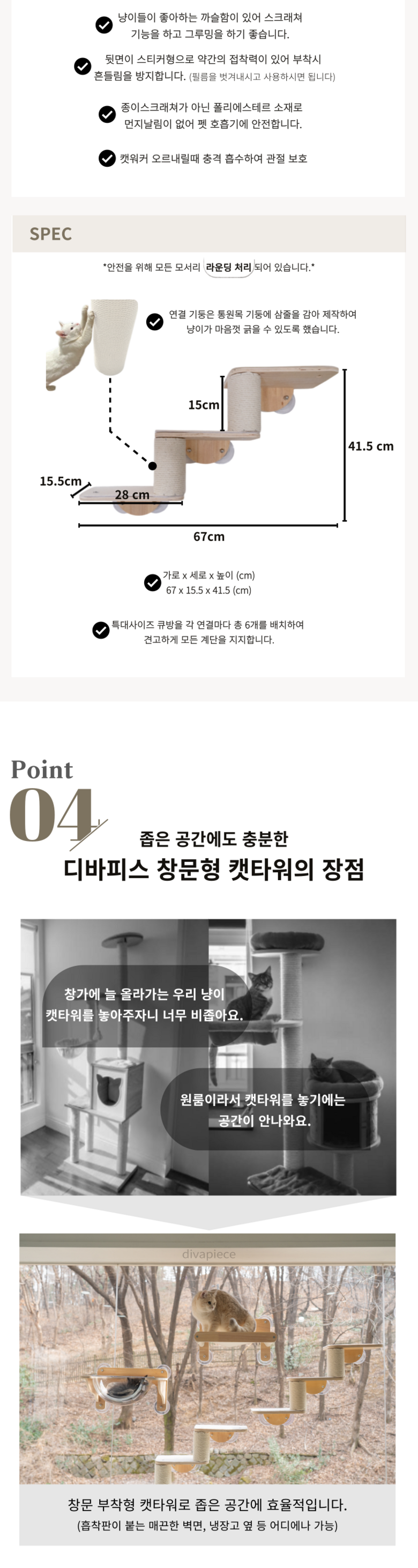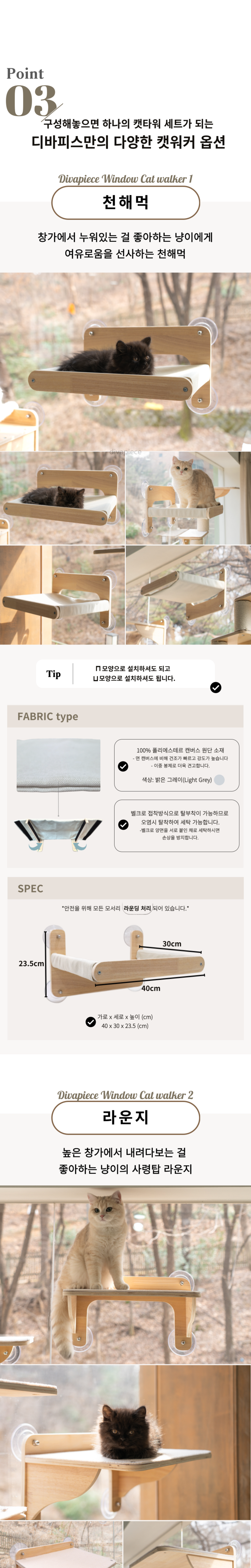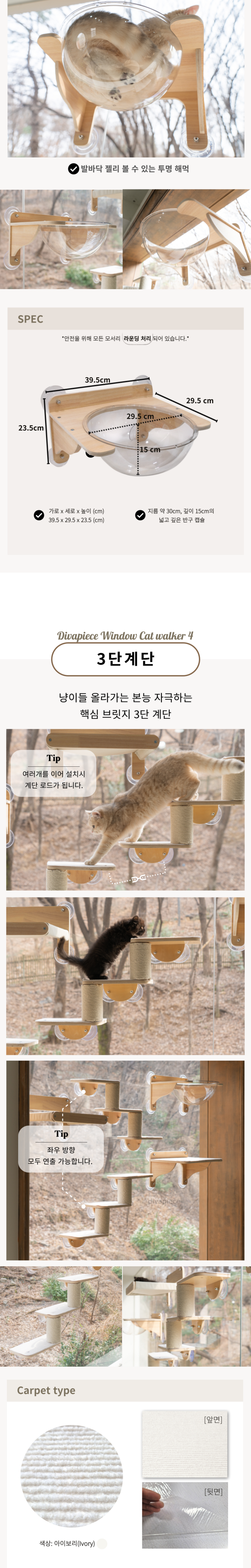 디바피스 고양이 창문 원목 캣타워 캣워커 캣선반 스텝 해먹