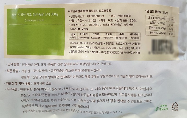 | 품명 및 모델명 | 굿데이 건강한육포 애견간식, 닭가슴살스틱 맛 | 인증사항 | 해당없음 |