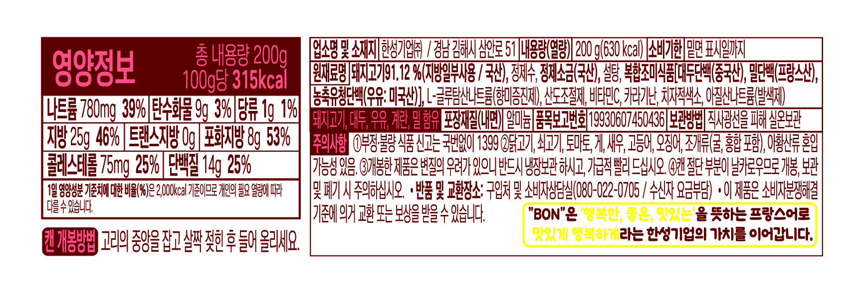 | 제품명 | 본햄 | 식품의 유형 | 프레스햄 |