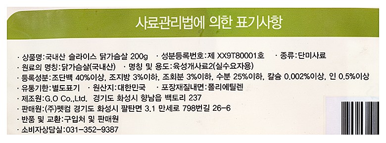 | 품명 및 모델명 | 국내산슬라이스닭가슴살200G | 인증사항 | 해당없음 |