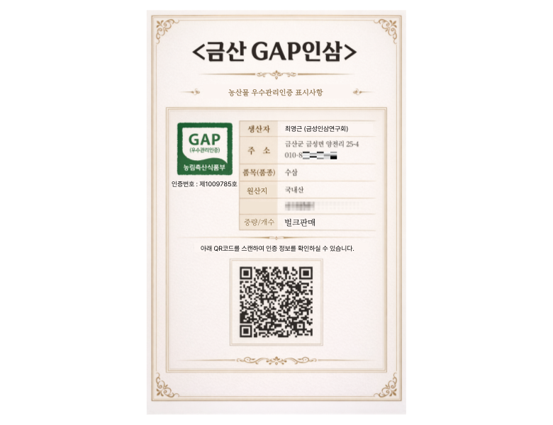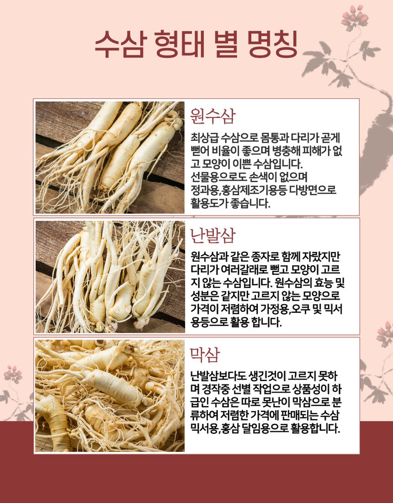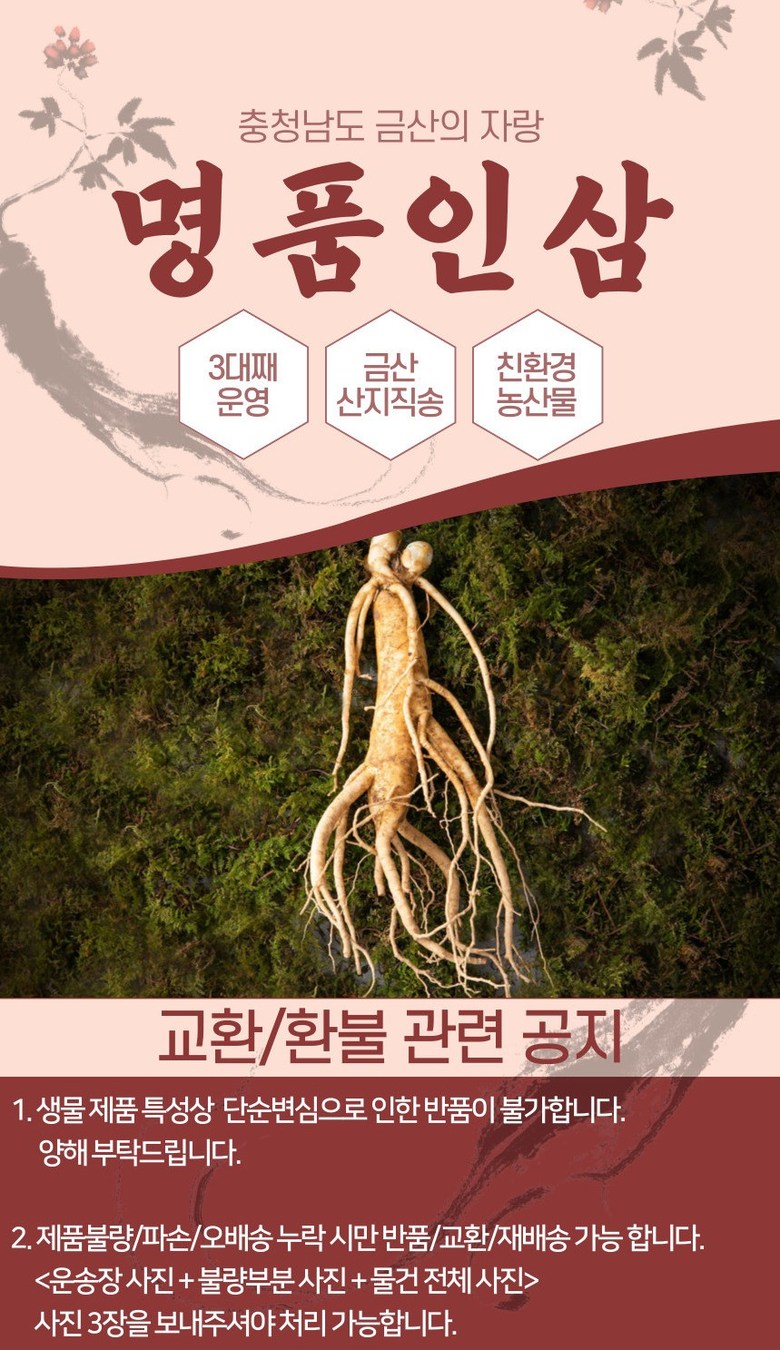 본 제품은 **신선식품(인삼)**으로, 보관 상태에 따라 품질에 영향을 받을 수 있어