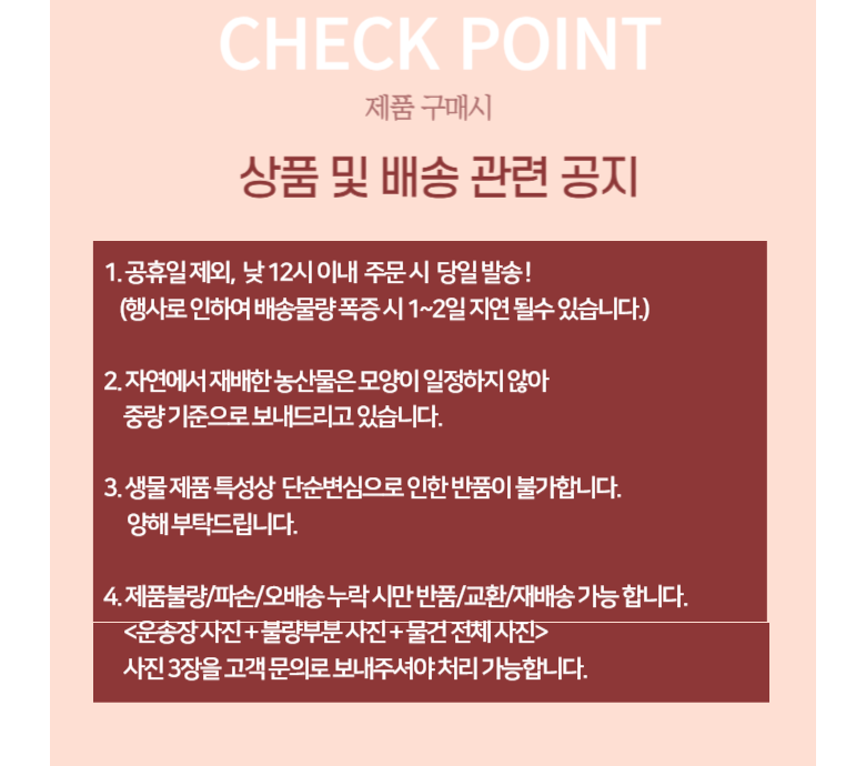 - ㆍ모니터 해상도의 차이로 인해 색상이나 이미지가 실제와 달라, 고객이 단순 변심으로 교환/반품을 무료로 요청하는 경우