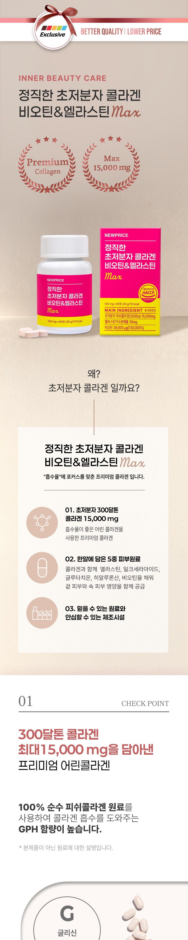 | 품명 및 모델명 | 뉴프라이스 정직한 초저분자 콜라겐 비오틴&엘라스틴 MAX | 인증/허가 사항 | 상품 상세페이지 참조 |