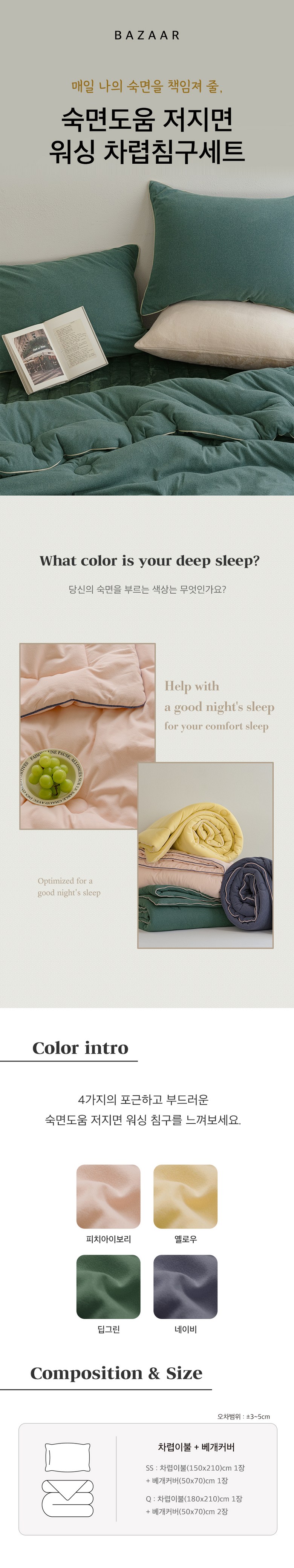 숙면도움 저지면 워싱 침구세트(이불+베개커버세트)