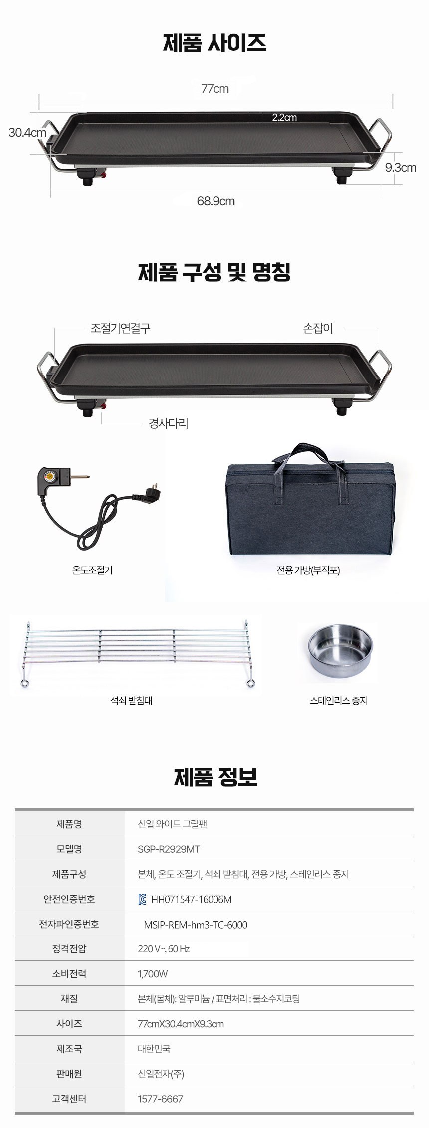 | 품명 및 모델명 | 신일전자 전기그릴 / SGP-R2929MT | KC 인증정보 | HH071547-16006M / MSIP-REM-hm3-TC-6000 |