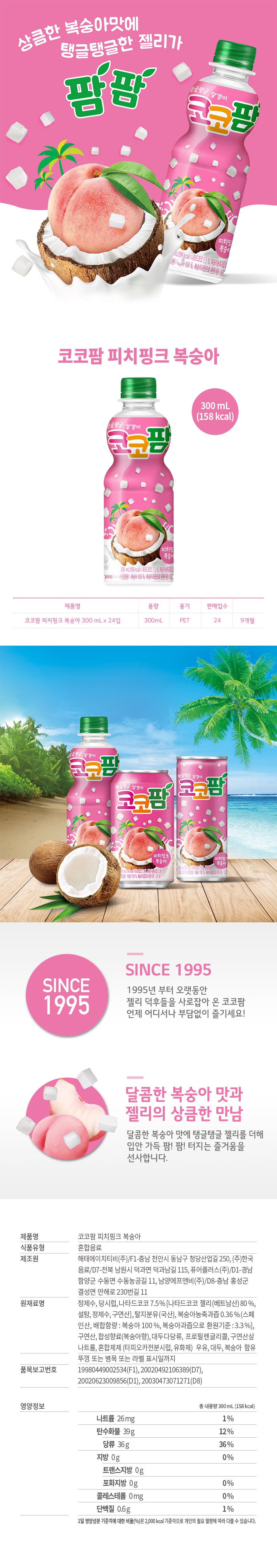 | 제품명 | 코코팜 피치핑크 복숭아 | 식품의 유형 | 혼합음료 |