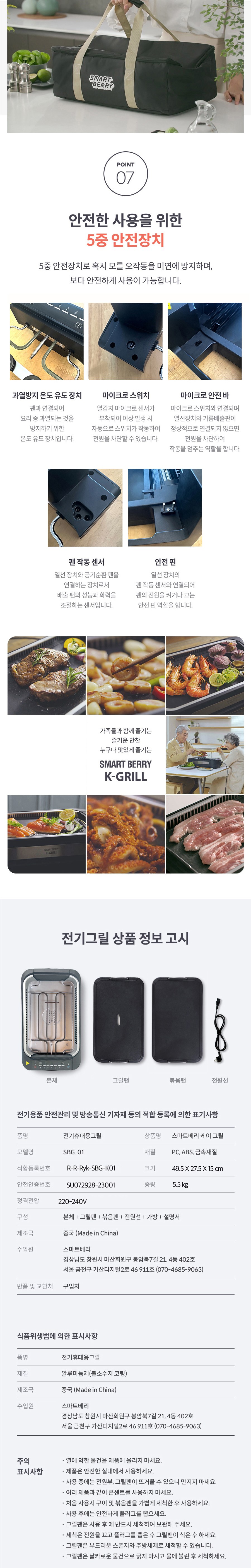 | 품명 및 모델명 | 스마트베리 케이 그릴 / SBG-01 | KC 인증정보 | SU072928-23001, R-R-Ryk-SBG-K01 |
