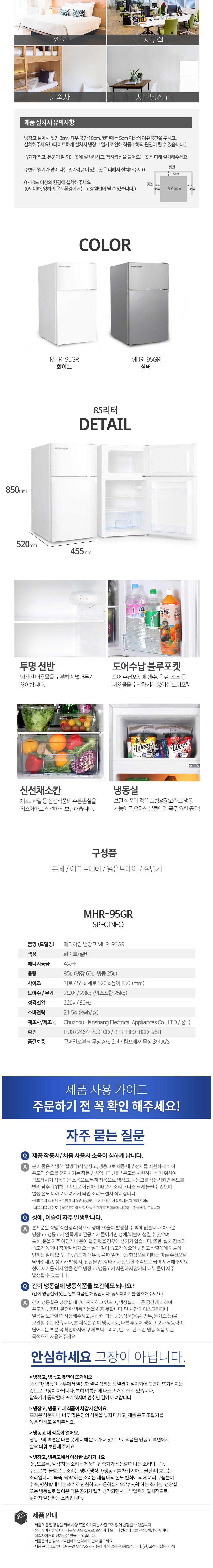 | 품명 및 모델명 | 냉장고 / MHR-95GR | KC 인증정보 | HU072464-20010D , R-R-HE0-BCD-95H |
