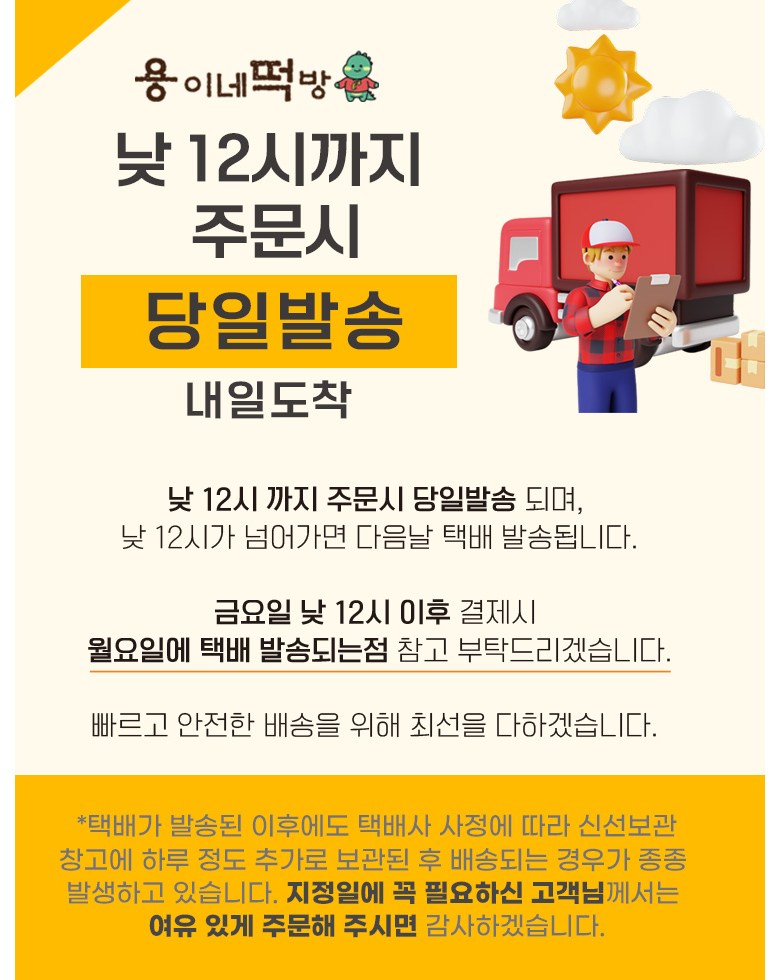 | 배송방법 | 순차배송 | 배송비 | 무료배송 - 도서산간 지역 배송불가 |