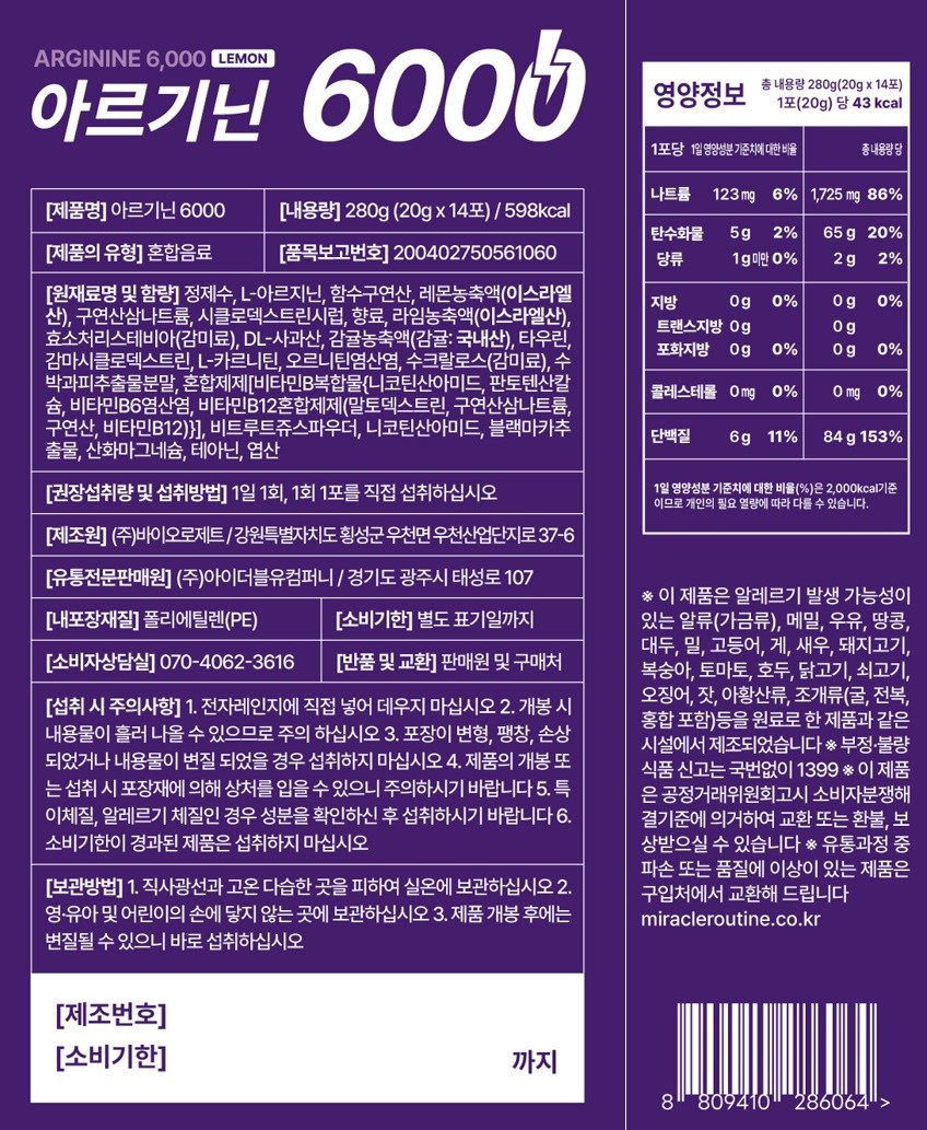 | 포장단위별 내용물의 용량(중량), 수량 | 14회분 x 3개 | 원재료명 및 함량 | 컨텐츠 참조 |