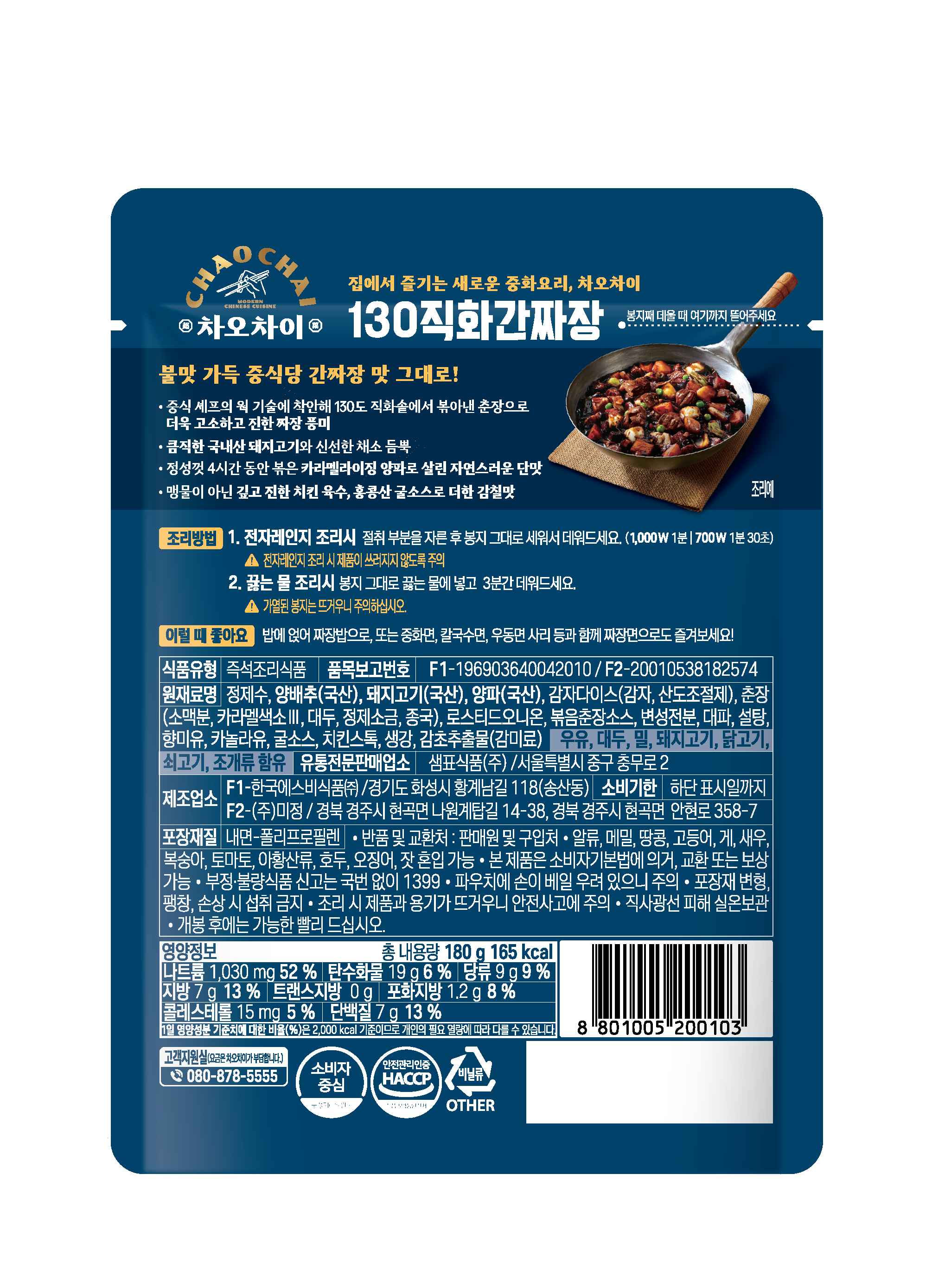 | 제품명 | 130직화간짜장 | 식품의 유형 | 컨텐츠 참조 |