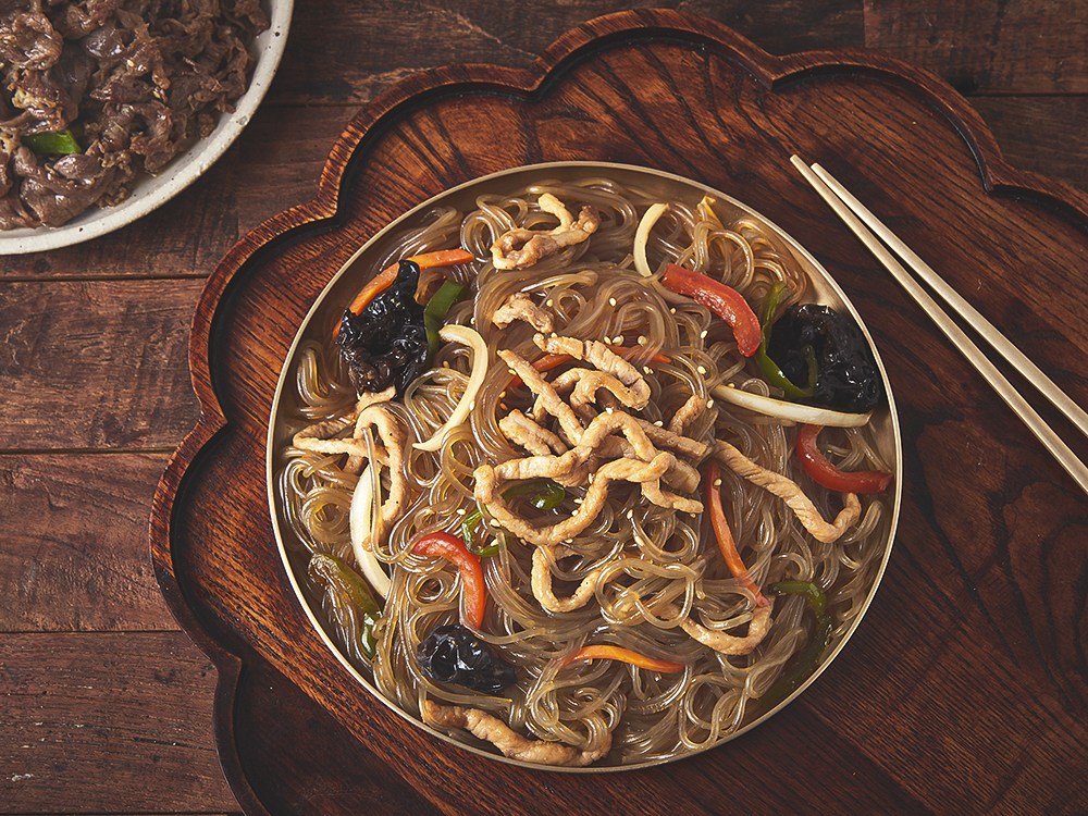 잡채를 만들려면 많은 재료를 씻고 다듬는 과정을 거쳐야 하는데요. 오늘 소개하는 잔치잡채는 번거로운 준비 과정을 싹 없애주죠. 깔끔하게 손질된 재료를 프라이팬에 휘리릭 볶아 따뜻한 잡채를 식탁 위에 올려 보세요. 짜지 않고 고소한 맛이라 흰쌀밥과 참 잘 어울린답니다.