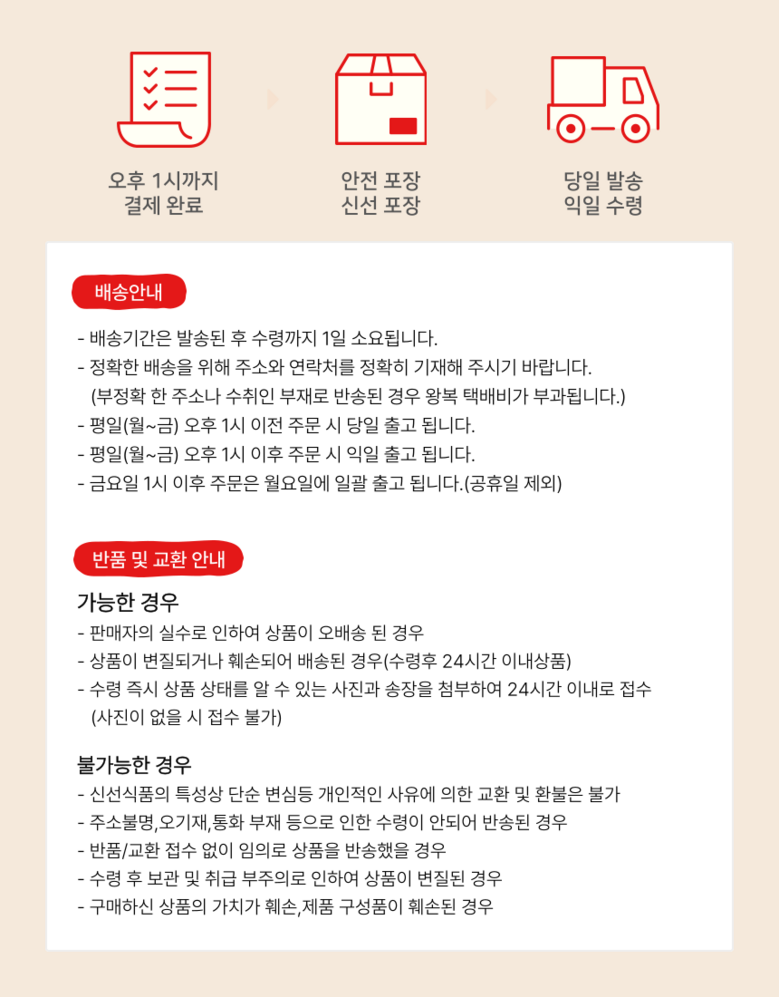 | 배송방법 | 신선/냉장/냉동 | 배송비 | 무료배송 |